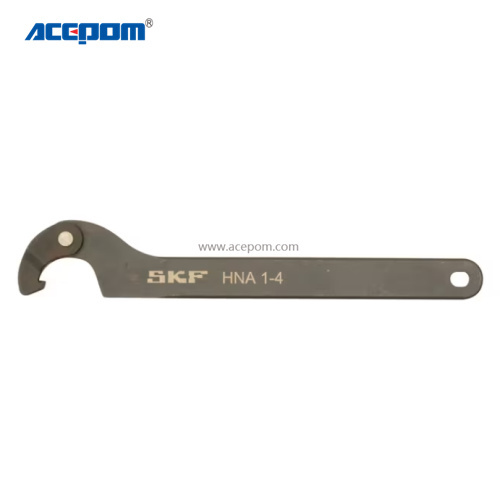 The SKF Adjustable hook spanner, size 1 - 4, has a pivoting hook that allows tightening and loosening of a variety of lock nuts. They are used to secure and adjust bearings on tapered journals, adapter sleeves and withdrawal sleeves. They are an economic solution as they fit on a variety of lock nuts with outer diameters 20 - 35 mm. To be more specific for locknuts: KM 1 - 4, KMK 0 - 4, KMFE 4, KMT 0 - 2, N 01 - 04 and M8x1 - M18x1,5 (DIN 1804).
